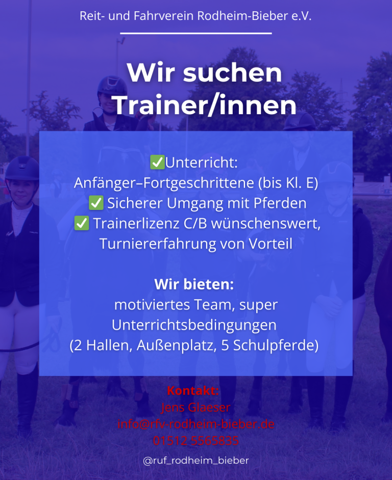Der Reit- und Fahrverein Rodheim-Bieber u.U. e.V. sucht Verstärkung im Trainerteam!