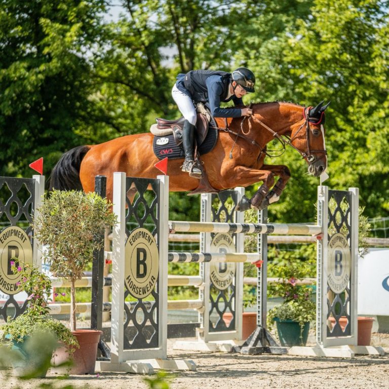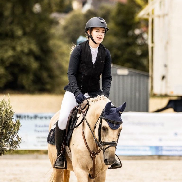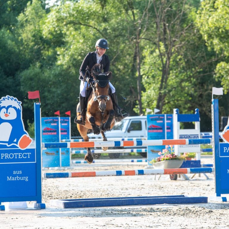 Selbst reite ich mit meinen Pferden Katan VA und Caylo VA erfolgreich bis 135 cm und bin im Regionalkader Hessen. Von 2019 bis 2024 war ich im Hessischen Vierkampf aktiv und durfte von 2022 bis 2024 für Hessen an den Deutschen Meisterschaften